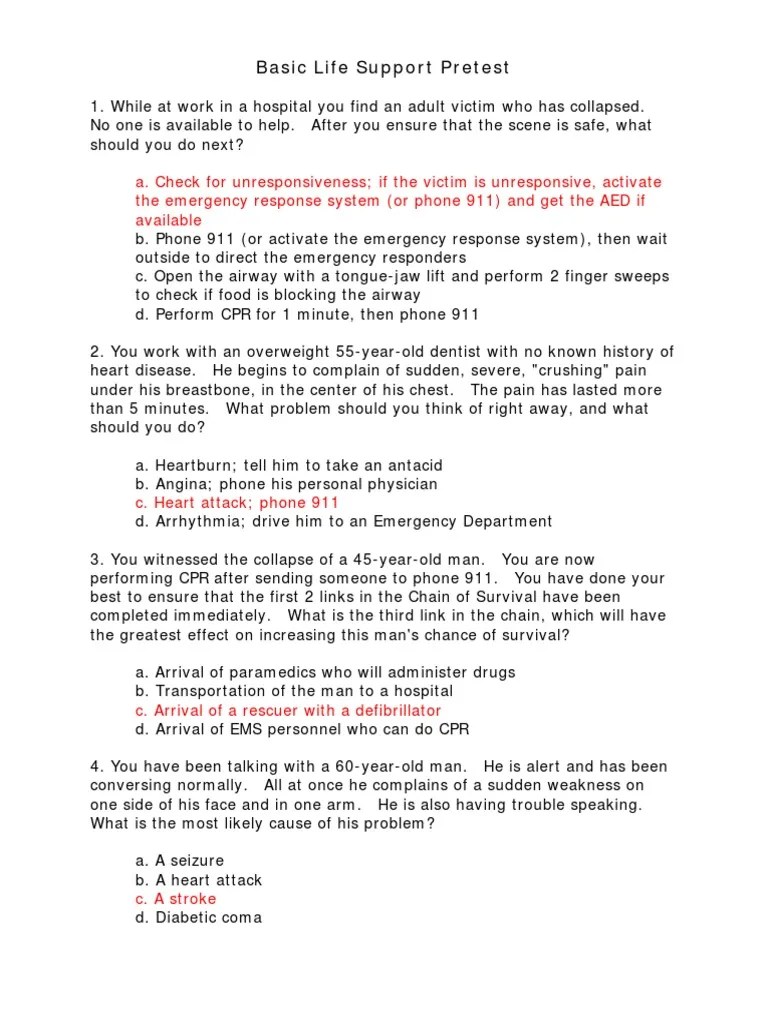 Try your hand at this free acls practice test courtesy of the american medical resource institute (amri) acls test answers pdf. Each quiz includes 5 to 10 questions designed to test your knowledge of that .